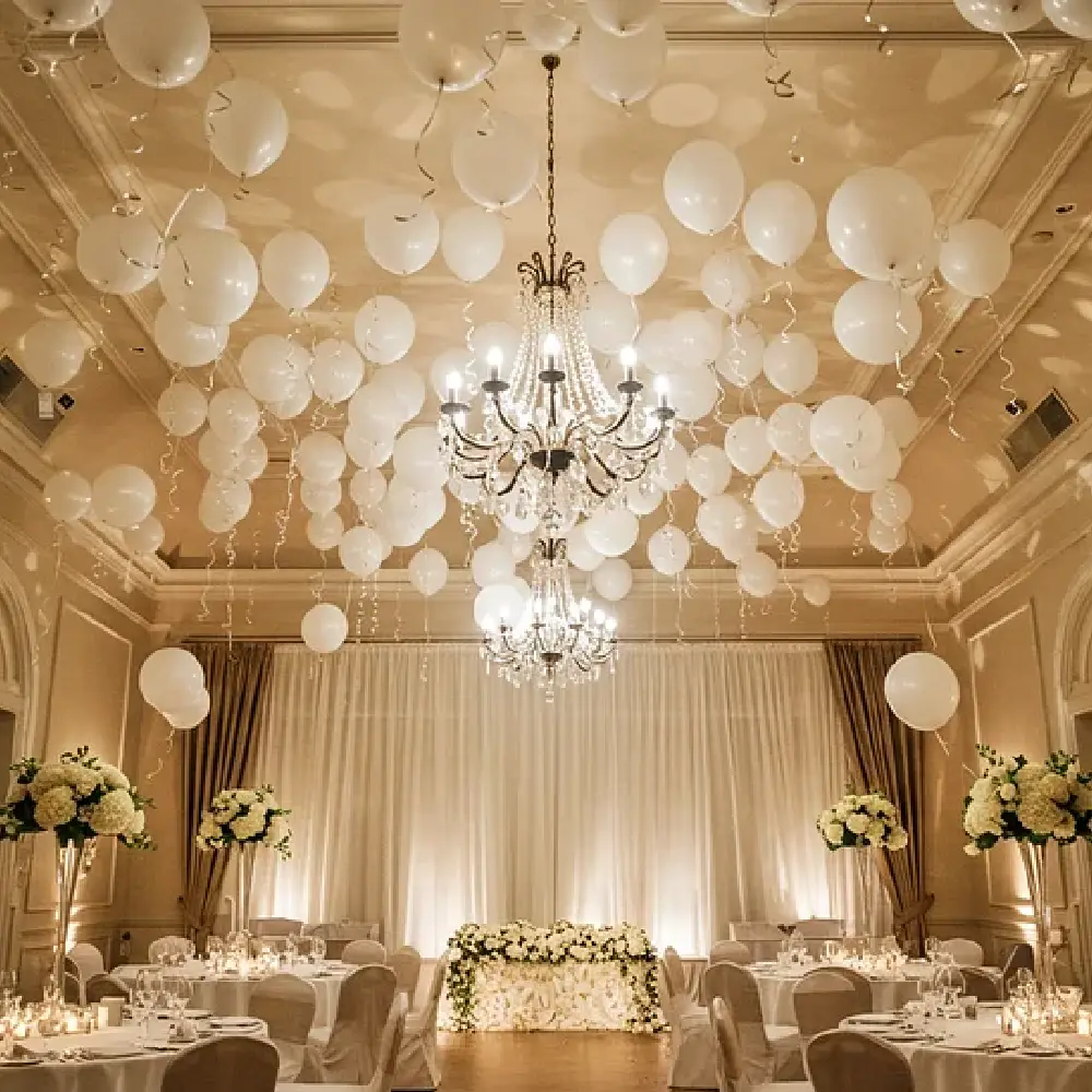 Decken aus schwebenden Ballons schaffen eine märchenhafte und elegante Atmosphäre, die Sie und Ihre Gäste in Staunen versetzen wird.