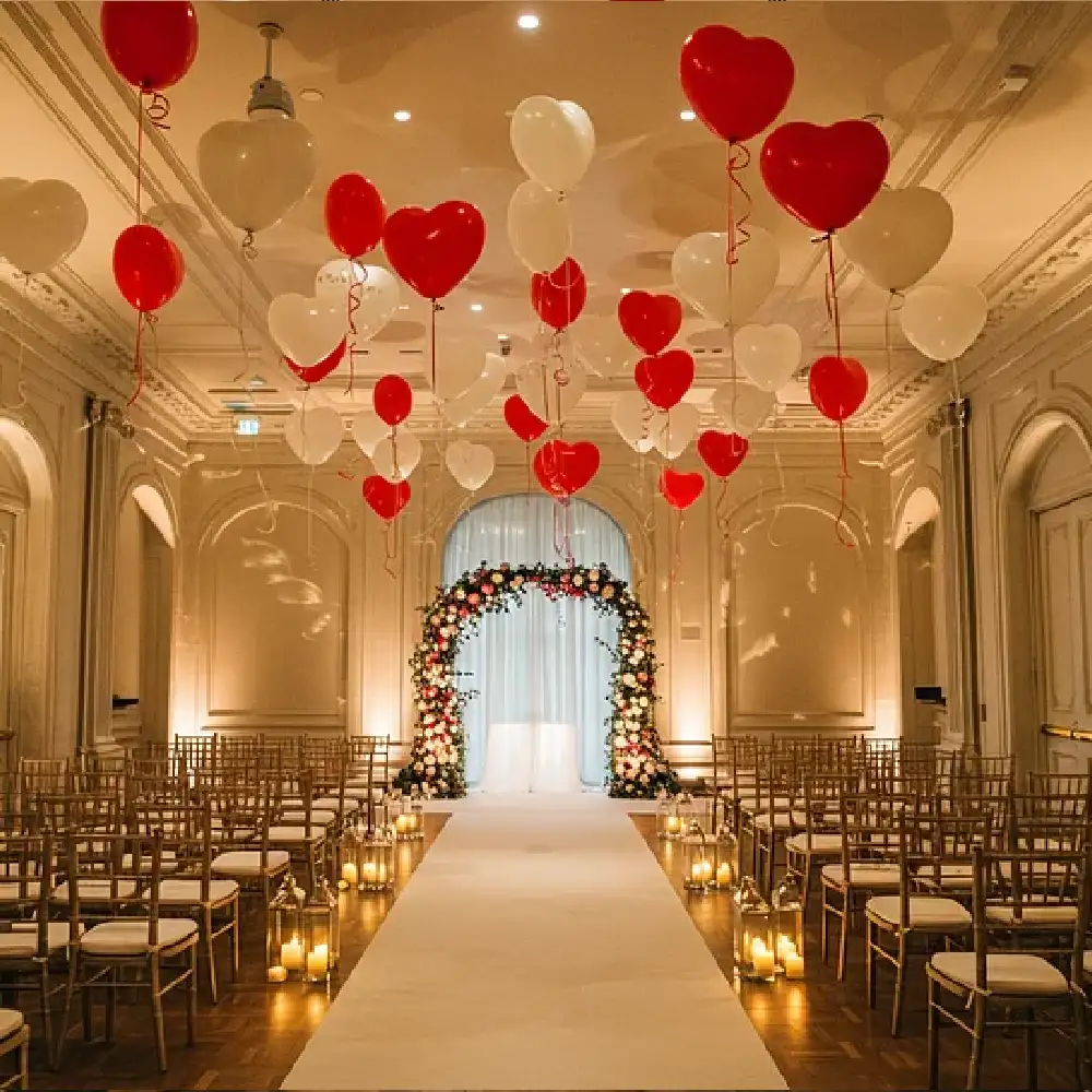 Lassen Sie Herz-Ballons in den Himmel steigen oder überraschen Sie mit einer beeindruckenden Ballonskulptur, die den Antrag unvergesslich macht.