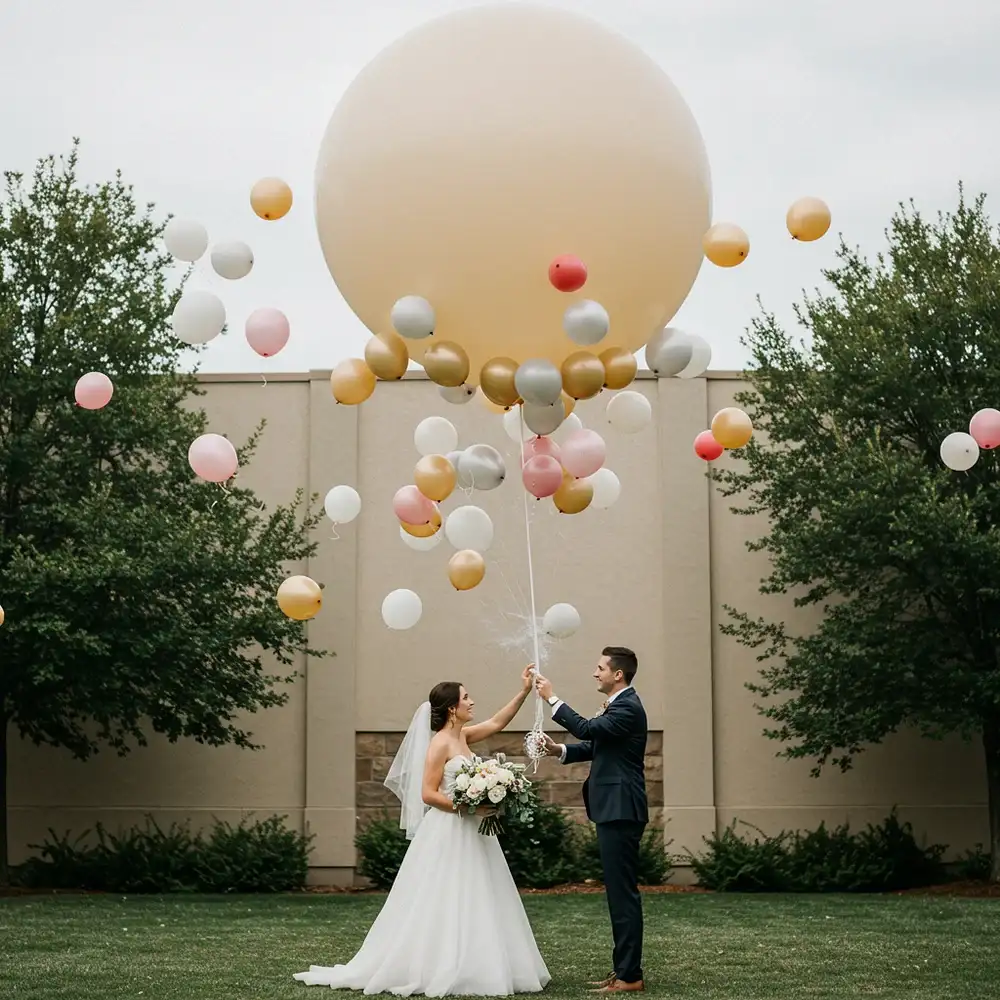 Überraschen Sie Ihre Gäste mit einem Riesenballon, der sich in eine Wolke aus kleineren Ballons entlädt – ein Moment, der unvergesslich ist.